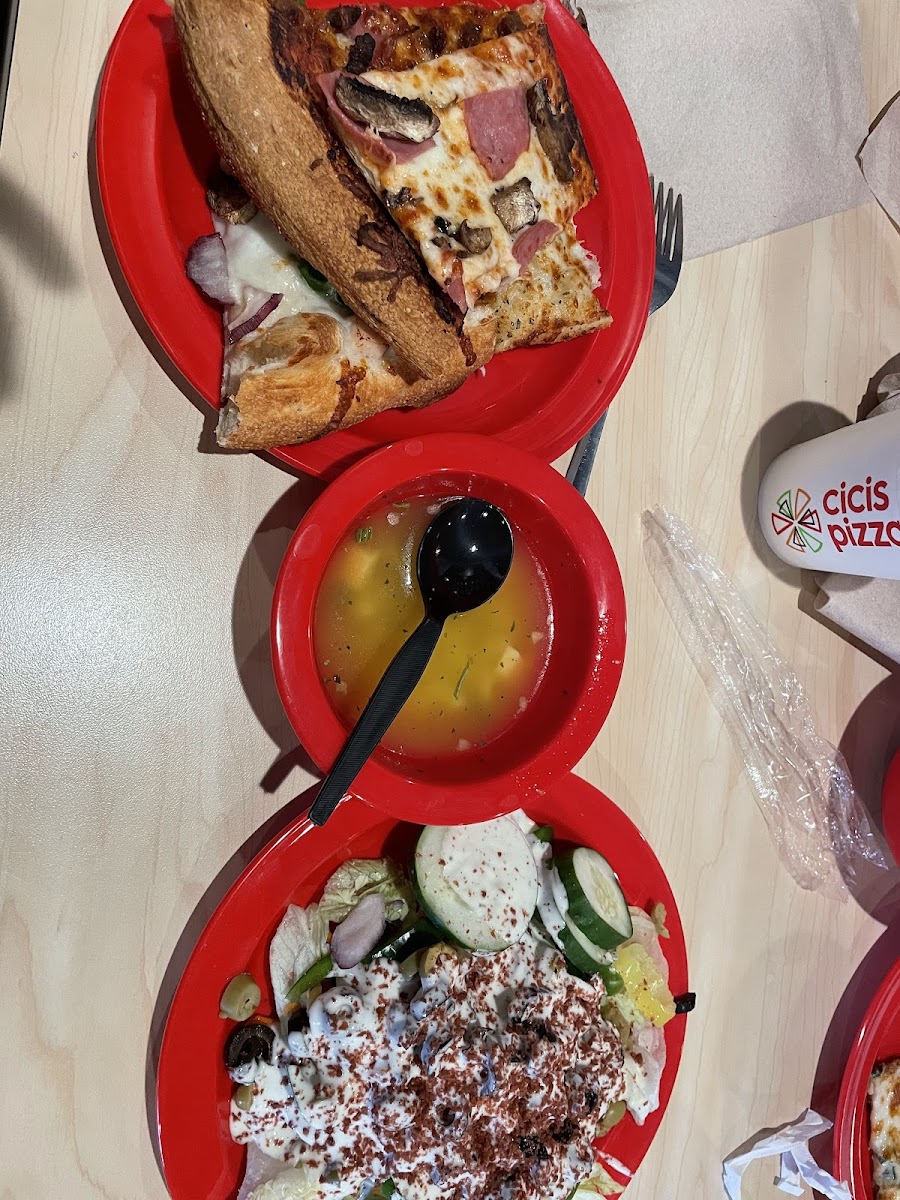 Now, let’s talk about the food - the real reason people keep raving about this place. The Sicilian Pizza is a top favorite, with its thick, crispy crust and rich tomato sauce that hits the perfect balance between tangy and savory. If you prefer something lighter, the Pizza and Salad combo or the Salad Bar is always fresh and colorful, packed with crisp greens and tasty toppings. And for those who love comforting classics, the Pizzas, Salad, and Chicken Noodle Soup pairing feels like a cozy meal made just for you. Don’t forget to save room for dessert - Cicis is famous for its great desserts, and their Lamington is a hidden gem that surprises first-timers with its fluffy texture and sweet coconut flavor.